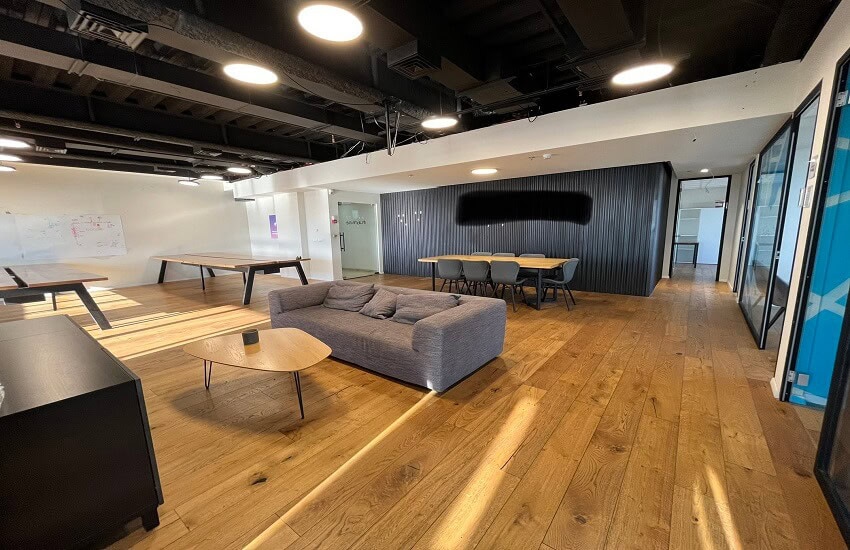 אודות חלוקת המשרד: חלוקה- חדר ישיבות, 4 חדרים, אופן ספייס 18-24 עמדות עבודה, מטבח ופון בוט.