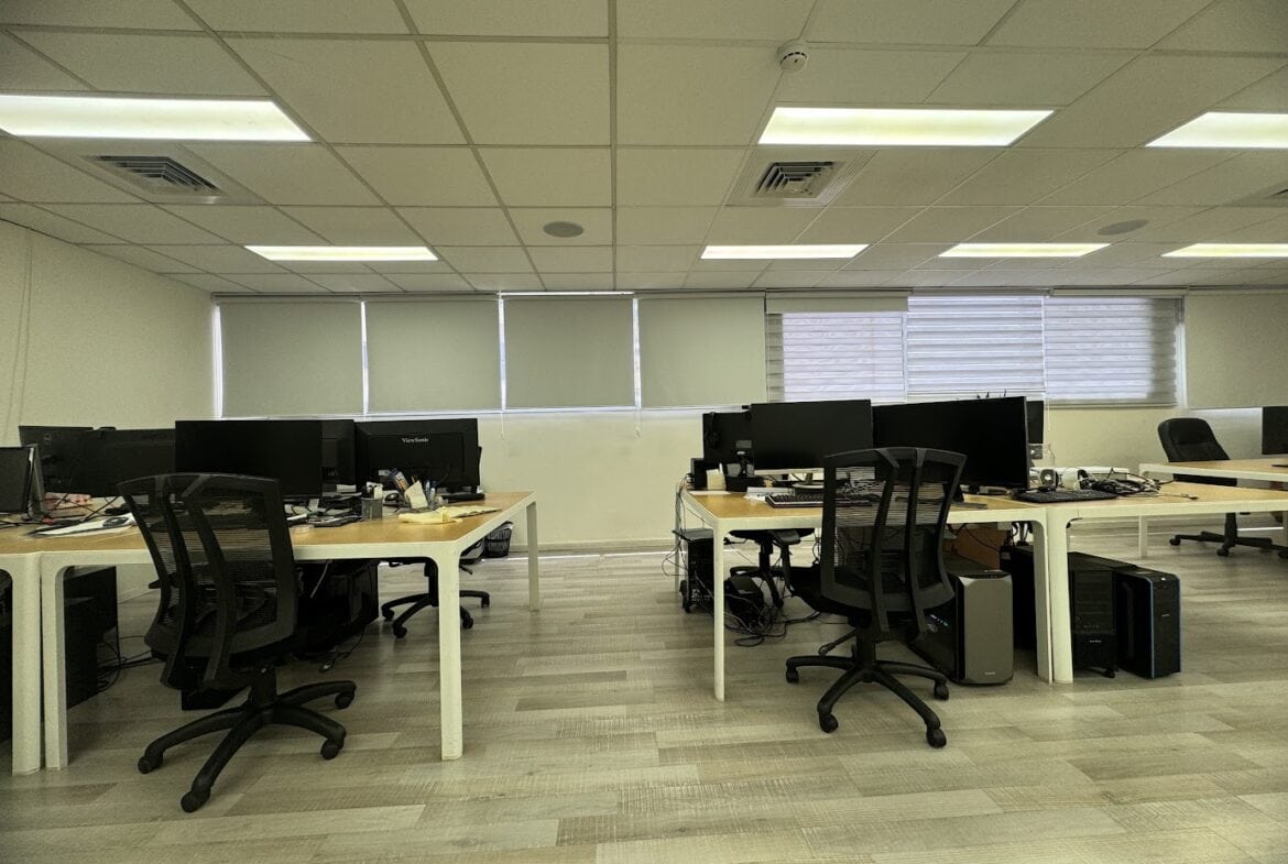אודות חלוקת המשרד: משרד מחולק לאופן ספייס 12 עמדות + חדר ישיבות גדול + 2 משרדים ומטבחון.