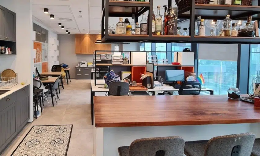 אודות חלוקת המשרד: משרד מחולק ל-2 חדר מנכ”ל, 2 אופן ספייס כ-10 עמדות כל אחד, מטבח עם פינת אוכל ושירותים. יש מרפסת קפה חמודה למשרד.
