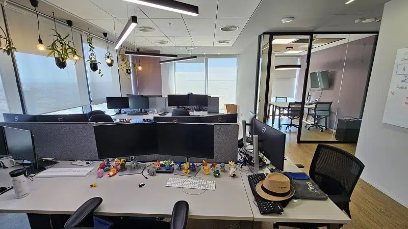אודות חלוקת המשרד: 60 עמדות עבודה, חדרי ישיבות, חדרי צוות ומנהלים, מטבח ולאונג’ מפנק כולל מרפסת.