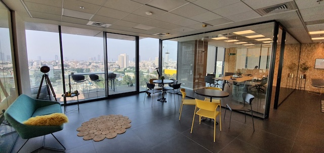 משרד מעוצב מרוהט עם מרפסת ונוף לים במגדלי הארבעה ת״א