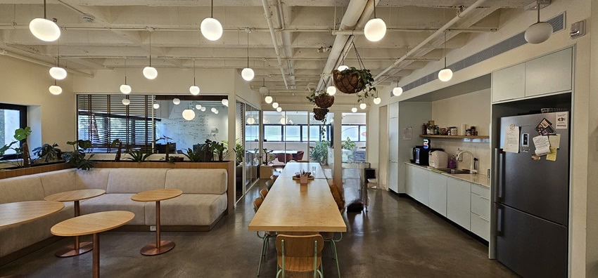 אודות חלוקת המשרד: המשרד מחולק לשני אופן ספייסים (כל אחד 11 עמדות עבודה), 2 חדרי עבודה זוגים, חדר צוות 3 עמדות עבודה, חדר לאונג’ שיכול לשמש גם חדר אחד על אחד או חדר ישיבות קטן או חדר עבודה זוגי, מקלחת, מטבח פתוח עם פינת אוכל, חדר שרתים.